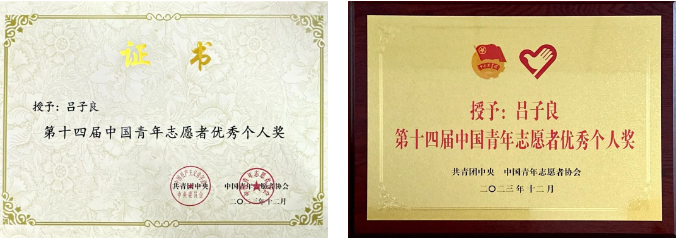近日,共青团中央、中国青年志愿者协会对全国志愿服务先进典型进行表彰,我校beat365中文登录入口2023级硕士研究生吕子良荣获“中国青年志愿者优秀个人奖”(全国260人,北京市仅13人),是唯一获此荣誉的北京市大学生。