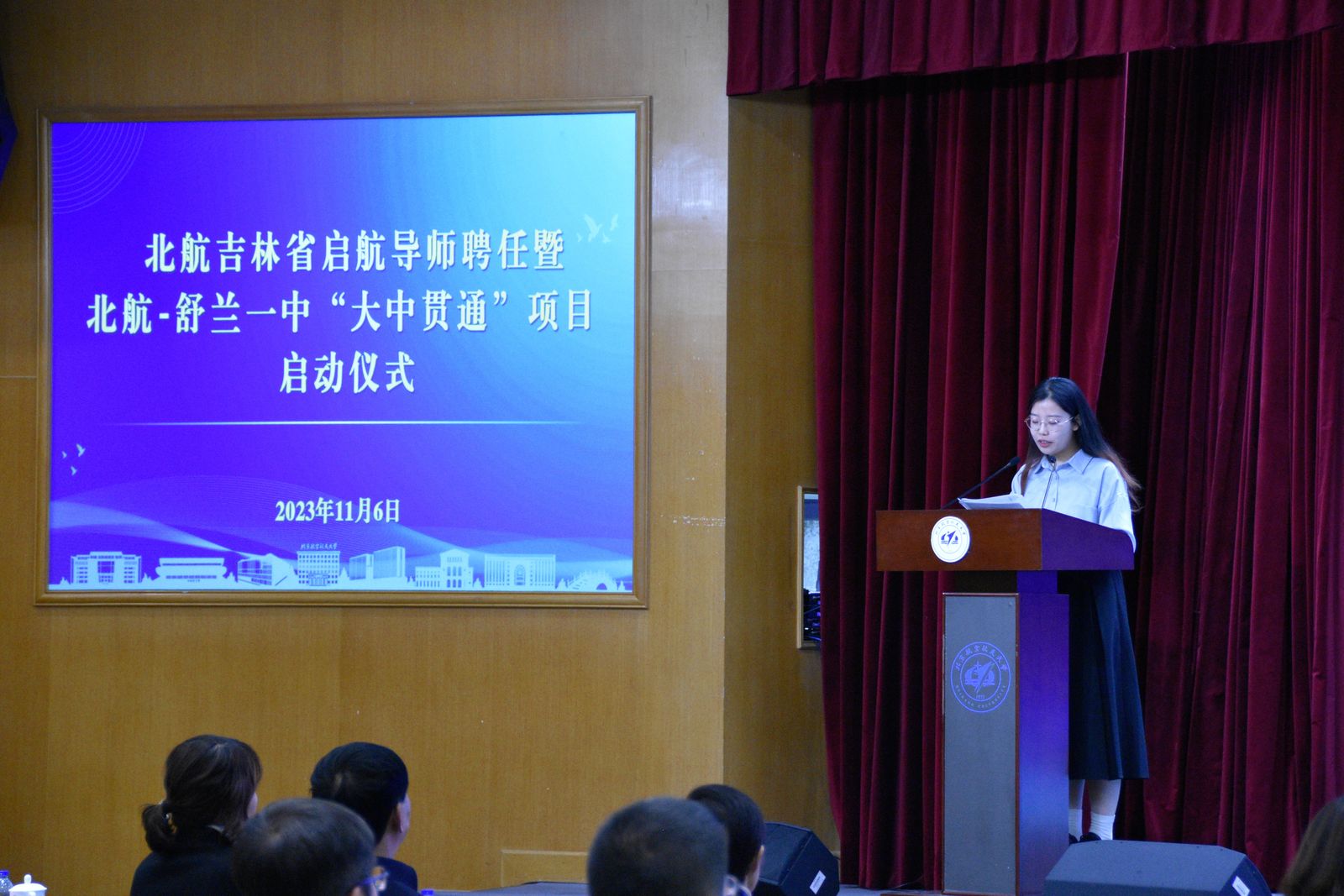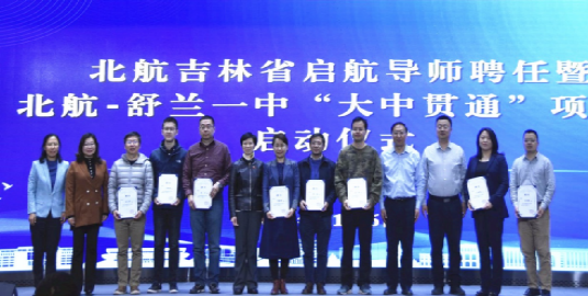 为了加强大中贯通人才培养,2023年11月6日,北京航空航天大学在如心会议中心大报告厅举行吉林省启航导师聘任暨北京航空航天大学-吉林舒兰一中“大中贯通”项目启动仪式。我校副校长张海兰,舒兰市第一中学校党总支书记倪彦鹏、副校长王磊、副校长陈茁,我校教务部副部长、招生办公室主任邓怡,beat365中文登录入口党委书记、吉林招生组组长王少萍,beat365中文登录入口院长、吉林省招生组组长吕金虎,前沿院智能交通研究院院长于海洋出席活动。启航导师代表、舒兰市第一中学校师生代表及在我校就读学生代表等90余人参加仪式。