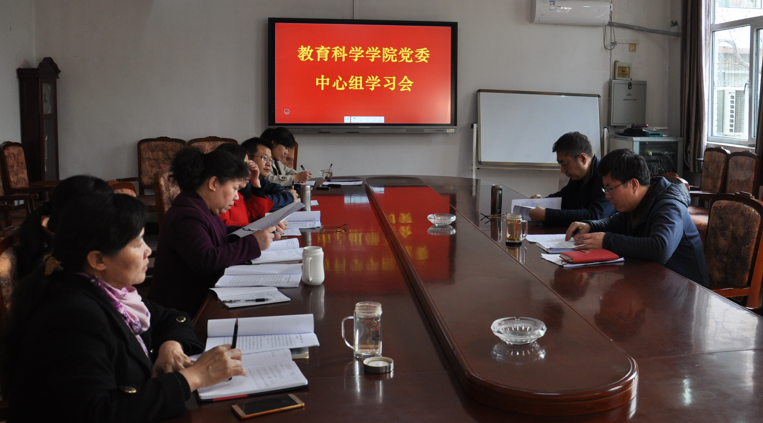 3月8日上午,js555888金沙老品牌党委在学院会议室召开中心组会议,传达学习有关会议精神。学院党委中心组成员成员参加,韩树林书记主持。