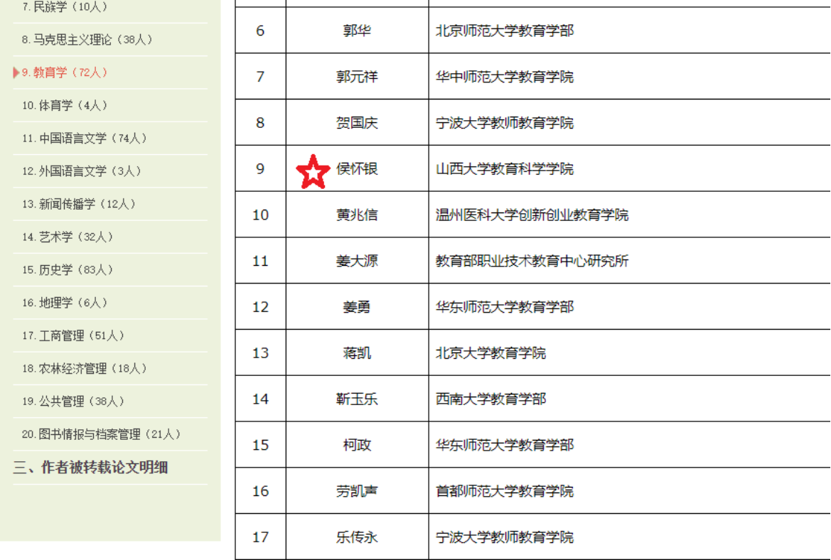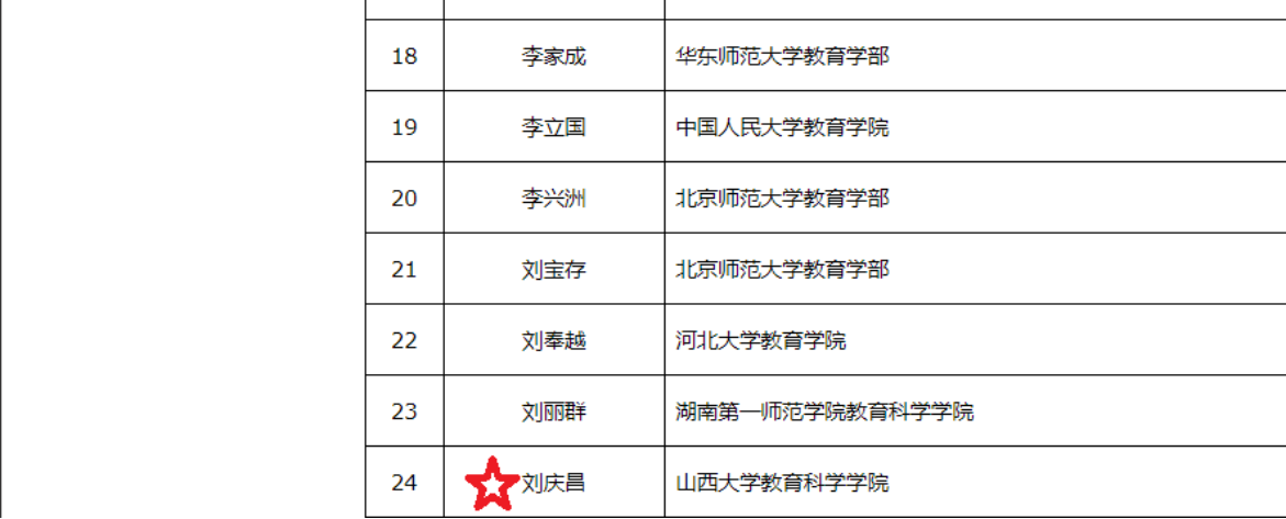 在全国教育学的72位作者中,金沙老品牌官网刘庆昌教授和侯怀银教授入选。刘庆昌教授继2016年入选之后,2019年再次入选。