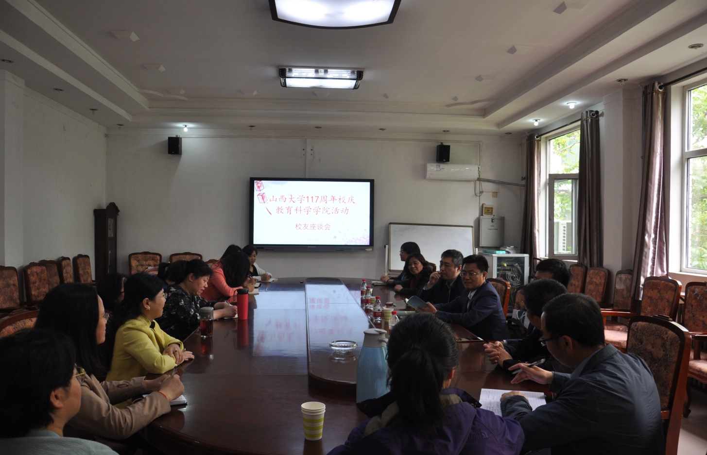 5月8日值js555888金沙老品牌117周年校庆之际,校友省教育厅高等教育处李金碧处长回到母校,与金沙老品牌官网教师进行了亲切座谈。学院领导、教师代表及行政人员参加了本次座谈。
