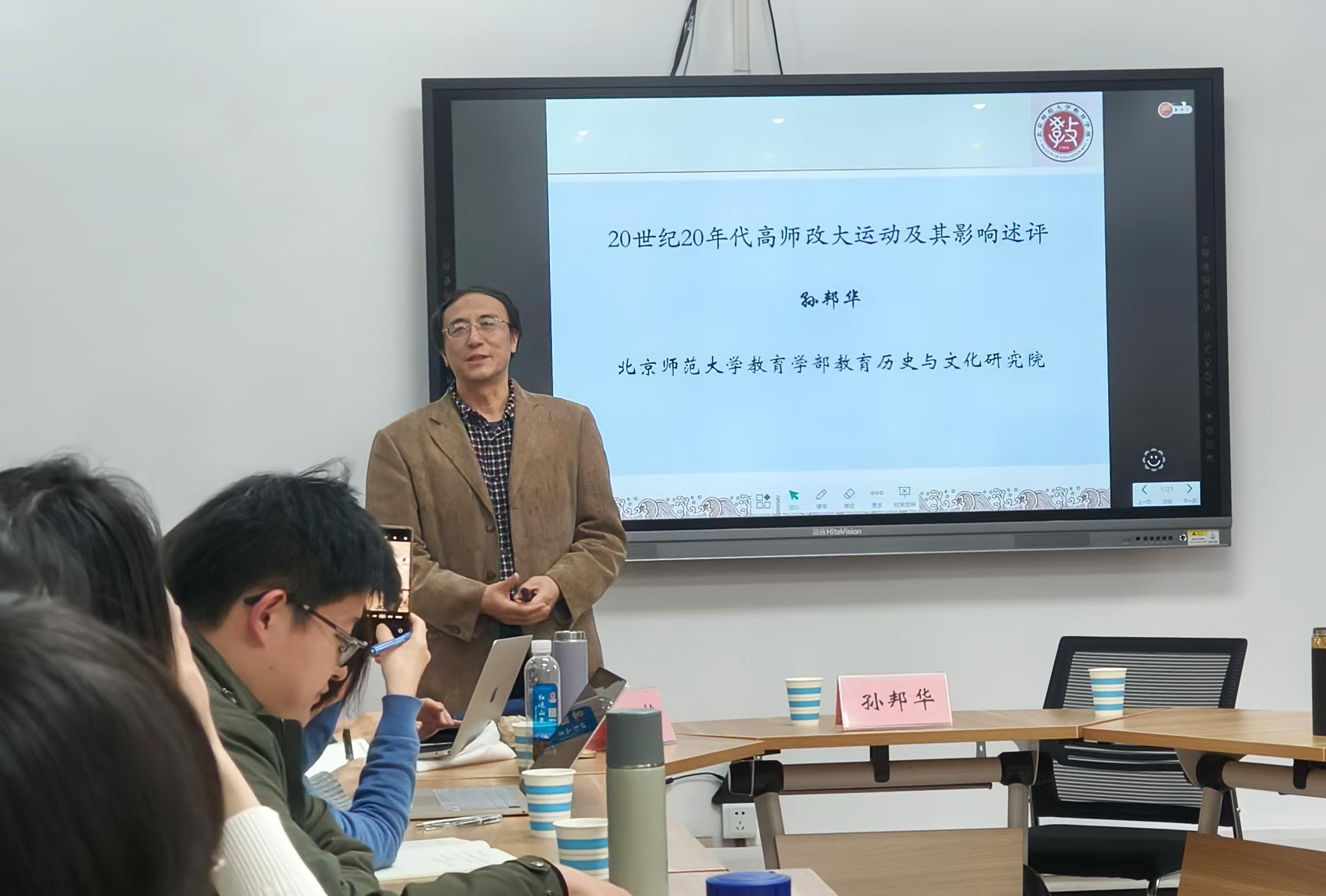 2024年11月1日下午,北京师范大学孙邦华教授在js555888金沙老品牌教学楼会议室作了题为《20世纪20年代高师改大运动及其影响述评》的学术讲座。讲座由js555888金沙老品牌副院长孙杰教授主持,学院师生聆听了本次讲座。